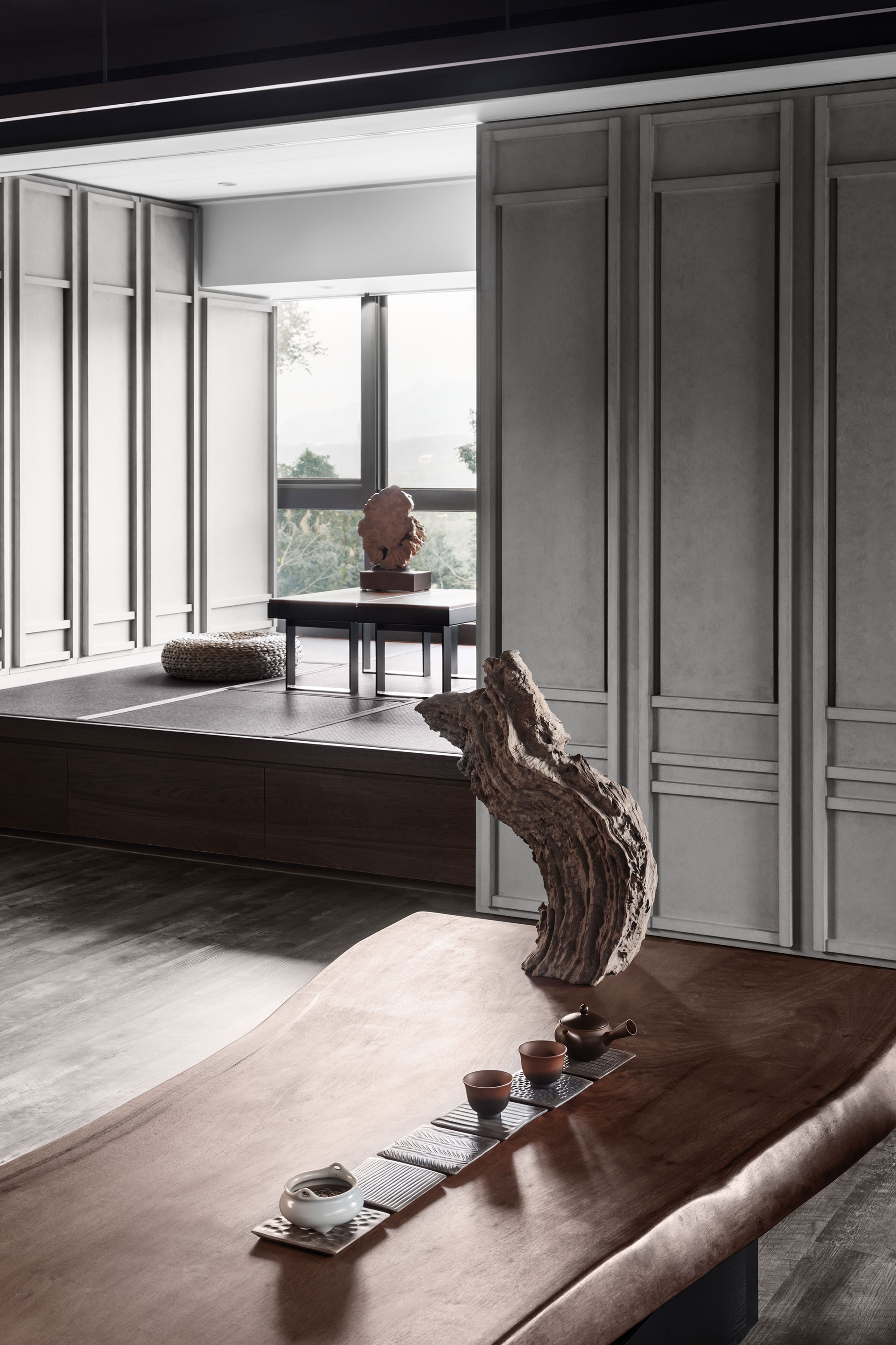 在入世的生活中努力了大半輩子,有沒有問過自己內心最渴望的是甚麼?物質無法讓一個成熟的心靈得到滿足,我們更渴望的是一個能大口呼吸,身心倚著大自然更迭變化的居住空間。如何讓空間形式更單純,在這單純的空間中獲得更大的安定力量,靜靜地坐在沙發上,而心,乘著風,從窗外飄向遠方的山嵐。